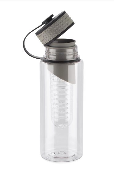 Bidon posiadający wkład na owoce. Pojemność 800 ml. Wykonany z tritanu. Zapakowany w woreczek biodegradowalny.