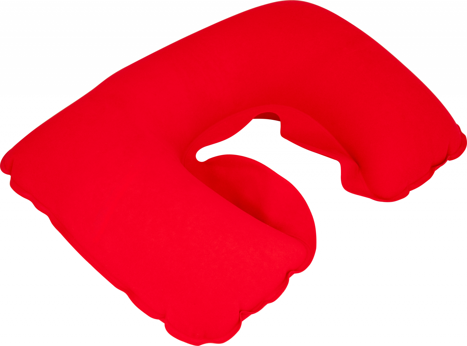 Welurowa, dmuchana poduszka podróżna o ergonomicznym kształcie, dzięki której można wypocząć podczas długiej podróży.