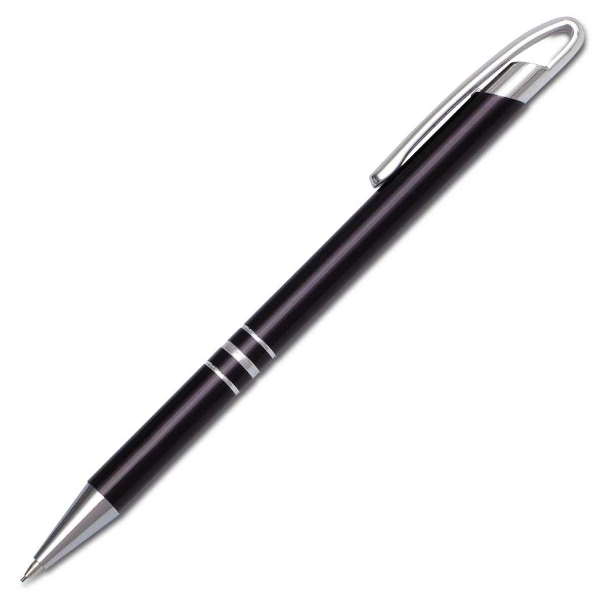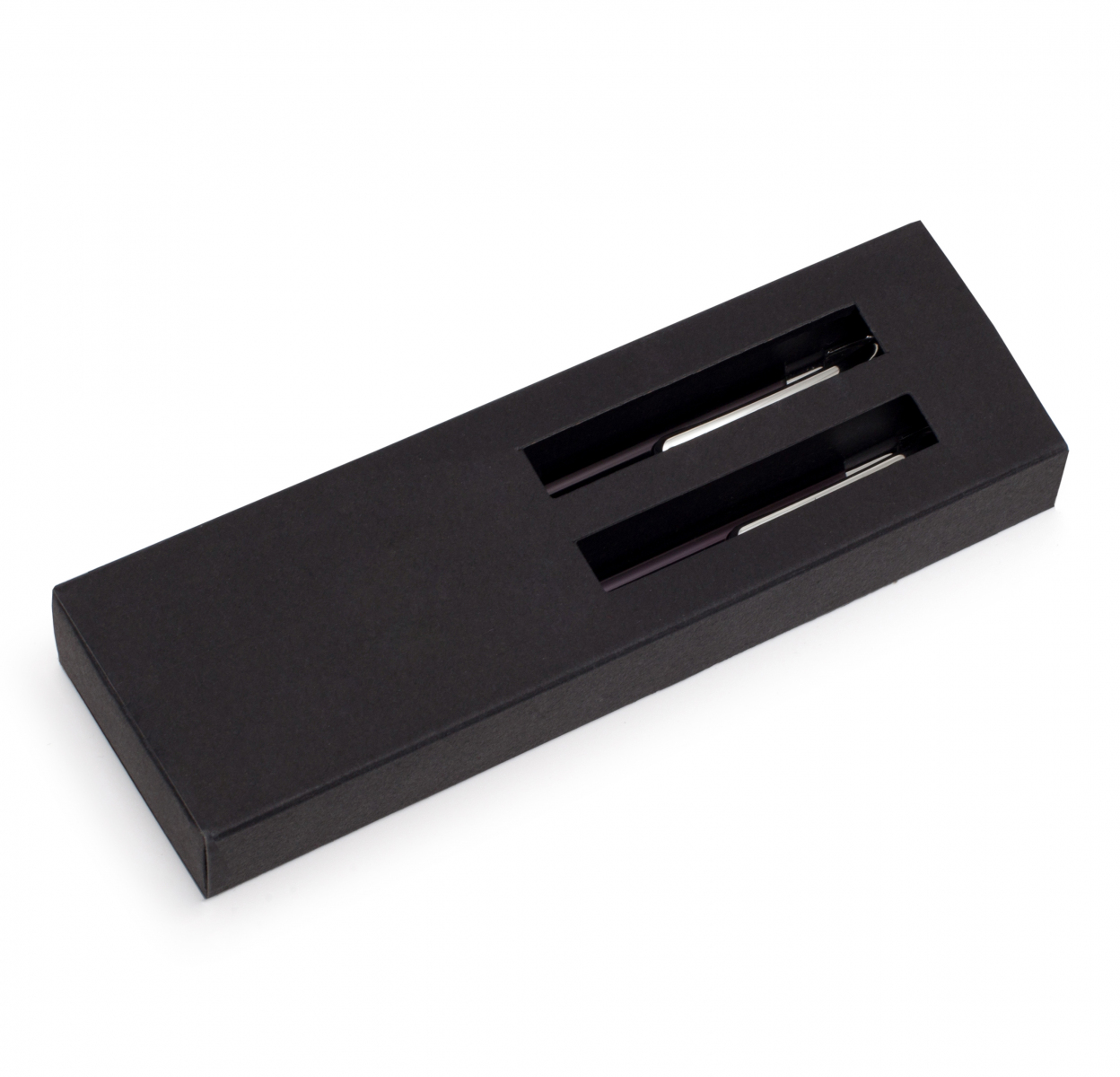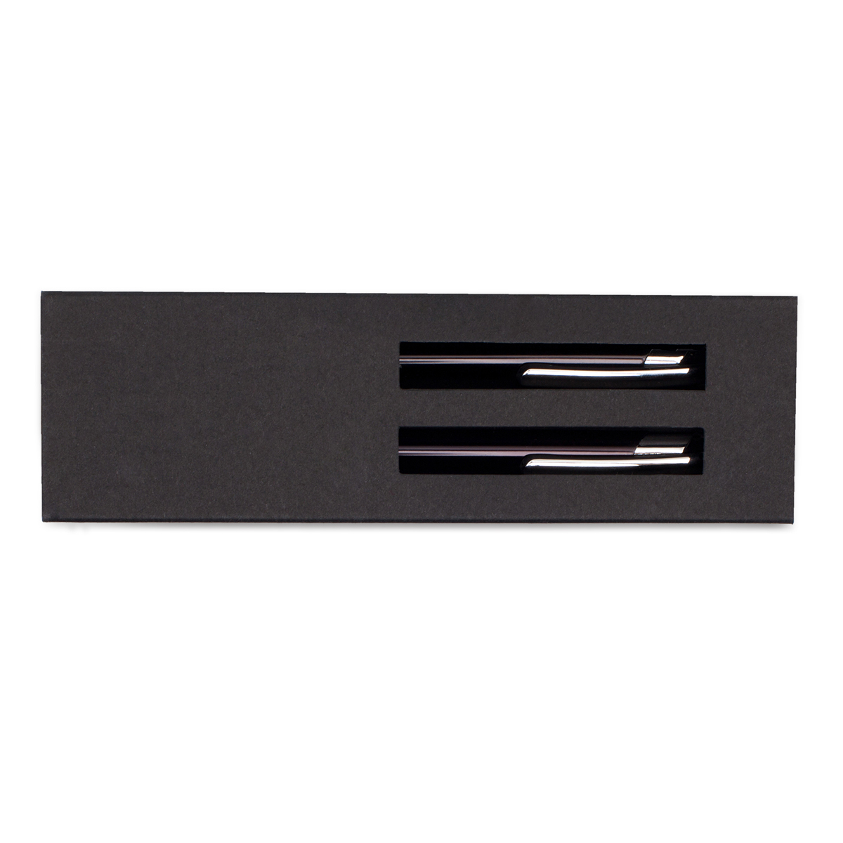 Zestaw składający się z aluminiowego długopisu i ołówka automatycznego. Wkład ołówka ma grubość 0.7 mm. Długopis wyposażony w niebieski wkład. Pakowany w czarne nasuwane papierowe pudełko.